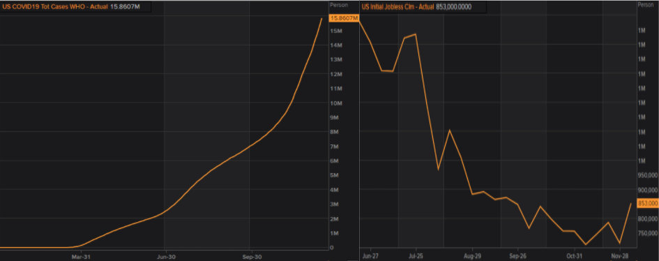 The Fed has to balance the longer term positive of falling unemployment and a vaccine again the immediate risks of sharply rising cases, jobless claims and no fiscal stimulus help. Without the vaccine their decision might have been much easier