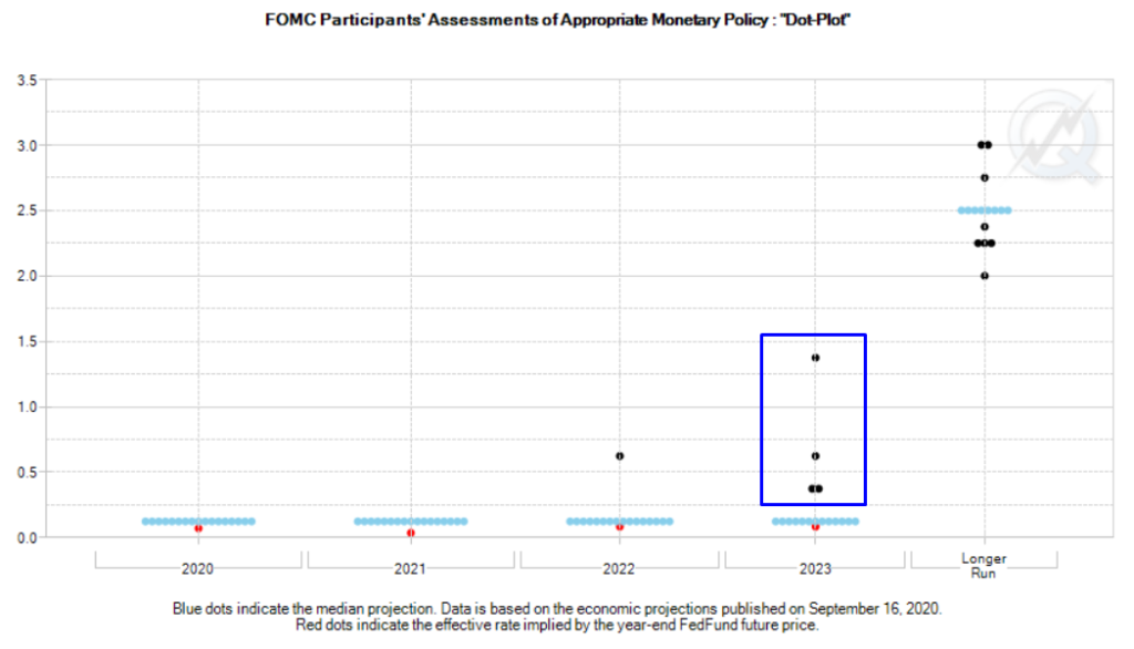 One option available to the Fed would be to link the asset purchases to a data point or their inflation target and maximum employment, as this is already how they guide on interest rates the implication is that QE will not be tapered until 2023 before a rate rise in 2024. This would be seen as dovish and save the need for the Fed to increase it purchases when the impact of a increase may not be felt until the economy is already improving in Q1 2021