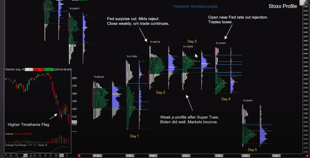 In this blog post, we will be looking at Elite Axia Trader executing big size in the Eurostoxx market combining multiple tools such as market profile, daily chart pattern, news, intraday price action, and order-flow. A combination of these tools can many times lead to a great opportunity such as the one described in this article. In opportunities like this, it is time when we should push our limits and trade with bigger size and squeeze as much as we can. Let’s have a look at how we can decompose the opportunity explained in this video.