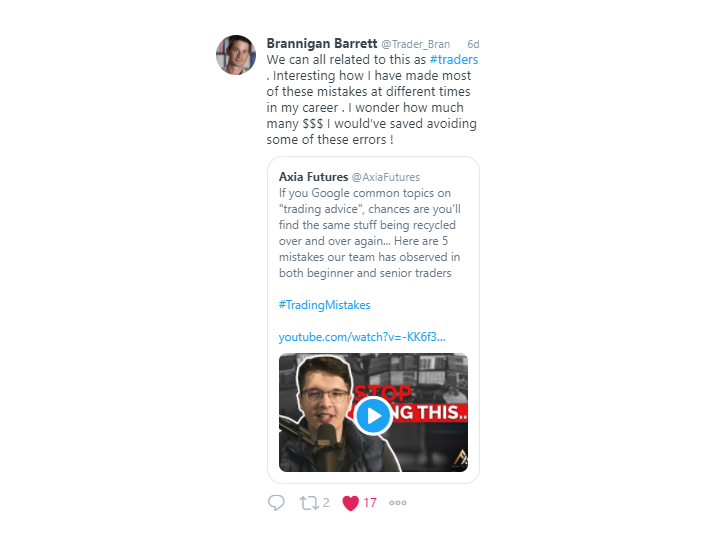 So this trading mistake manifests itself in many, many different ways. But one of the most popular ones which we see repeatedly is blaming things on the algos, blaming things on the hfts, the stimulus, etc. This really comes from two things. One, you will actually notice that the less time someone has been actually trading, the more opinionated they are on this. The less time someone’s been trading, the more they’ll tell you. They’ll tell you order flow doesn’t work. They’ll tell you charts don’t work. They’ll tell you, you cant trade the news because of the algos and on and on and on. They’ll use this escape mechanism because they still don’t understand that because they expected they will trade markets for two weeks and do amazingly well from the beginning. And if they can’t get it, no one else can. So there must be some kind of catch, there must be some kind of thing that makes it impossible for anyone to trade. And they know it because they read some forum posts about someone or some tweet about some random stranger saying how it’s impossible because of the hfts, because they also can’t perform to a high level and they find some kind of mechanism to absorb responsibility. Now the big mistake for you is that you’re onto this. And then flying under the banner of new contract order flow because of the hfts you can’t trade well. And so really the mistake is understanding this kind of feature where so much of this conversation is made by other people who have traded for a very little amount of time or may have traded before and were successful and now are no longer successful. And you enter this fear too which is very difficult to resist and to be honest, you will not know any better either because you are just starting out too, trying to figure it out. This relates to mistake number 1: do not box yourself into this kind of negative thinking and this sort of mentality. So regardless of what’s going on, there will always be opportunities in the markets. You just have to be open-minded enough to shift your perspective and to take advantage of these market features and opportunities that will come. If your edge stops working, it is a normal part of trading and then it’s your responsibility to readapt, relearn and move on, instead of then absorbing responsibility saying, I can’t do this, and the market is rigged.