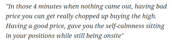 Although it might sound obvious, the biggest advantage of Harry in holding the position during the deeper pullback was the timing on a trade. He had a good price location in the first place thanks to the good preparation and speed with which he has hit the market. This was one of the most important variables for staying in the trade. This is what he has said: