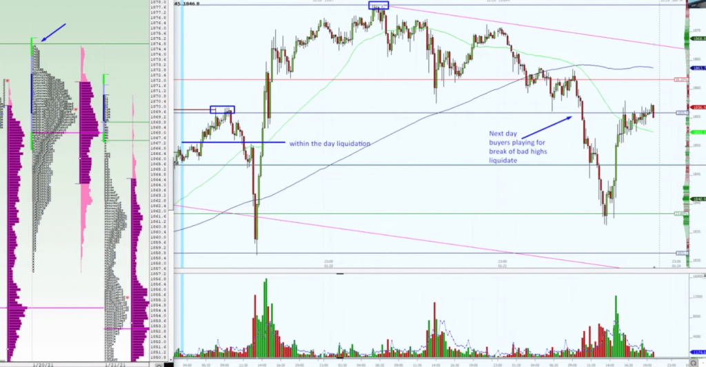 In this blog post, we will introduce and discuss trading strategies around poor lows and poor highs. Trading around poor highs and poor lows can provide opportunities where the market is skewed in your favor. These opportunities either lead to the burst of trading activity through the poor level or a liquidation away from the poor level. We will discuss how to identify these poor areas, what price ladder trigger points you can look for to manage the trade, and what to do when market signals that the liquidation move might happen soon. We will provide you with three strategies our traders use, to profit from this market vulnerability. If you find these types of trading posts interesting, don’t forget to check our previous post: “VWAP Trend Trading Strategies“.