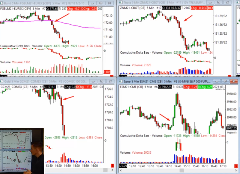 The second clue that held Harry’s conviction high on this trade were the correlated markets. As we were breaking out, the US Equities Cash session just opened in an open drive fashion. Bonds were offering, Spoo was bidding up. The feeling of “risk-on” mood was something that could help the Gold moving lower.