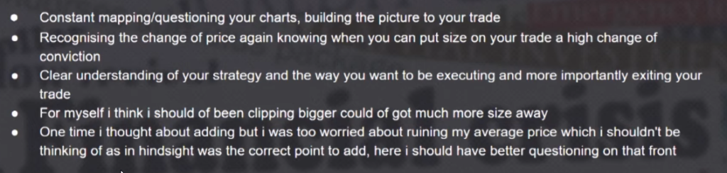 As the trade progressed lower, Harry is willing to hold his core position longer, he is not panicking because he has a high conviction that there is simply just much more to unwind after such a long time of compression. This is a great lesson for all traders. Many times we tend to panic with any two-way auction happening during our trade, we are caught in a moment, forgetting that in order to turn around the move a massive buying would have to occur. To turn direction at this location, after such compression and unwinding simply requires more time and much more buying power, therefore there should be no reason to panic. Easier said than done, but it is important to have these reminders at the front of our minds when fear starts to creep in.